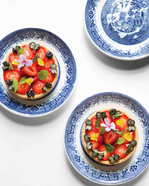Trong khi hoa tulip, hoa mẫu đơn và dao dĩa, ly đại diện phong cách châu Âu thì bình hoa, lọ đựng gia vị bằng sứ phảng phất nét châu Á.
