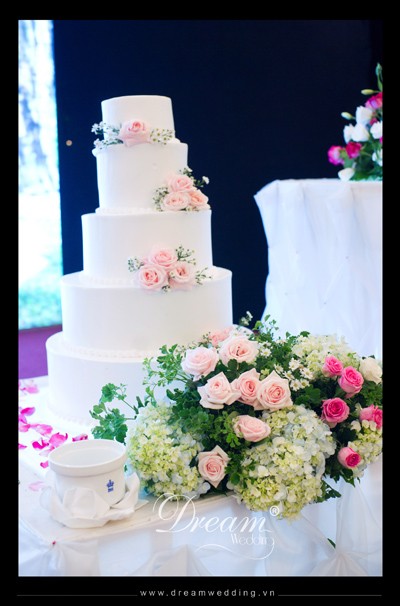 Trang trí tiệc cưới tai Rex Hotel, trang trí đám cưới - hoa tươi trang trí xung quanh bánh kem