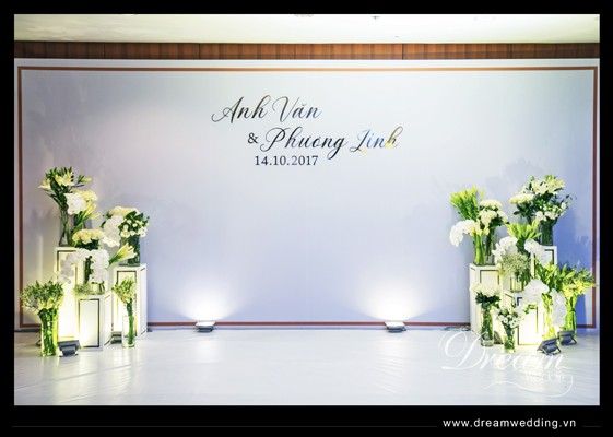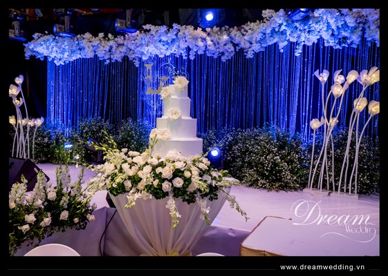 Tông màu trắng được Dream Wedding sử dụng trong trang trí đám cưới của CR Anh Văn & CD Phương Linh tổ chức tại sảnh tiệc cưới khách sạn Lotte Legend