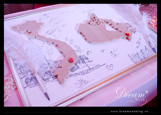 Sổ ký tên 3D được thiết kế riêng với hình ảnh 2 đất nước nơi sinh sống và định cư của 2 anh chị (Việt - Úc)