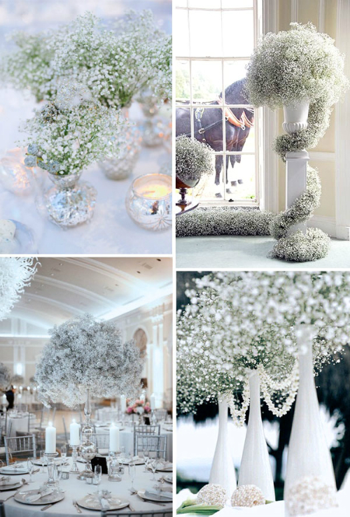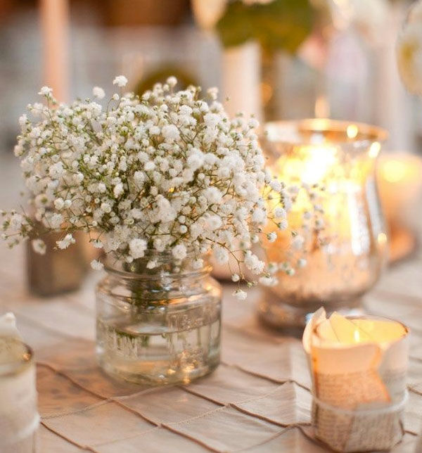 Ở những buổi tiệc lớn, hoa baby được kết hợp cùng những chiếc bình cao để giảm bớt sự trống trải của không gian.