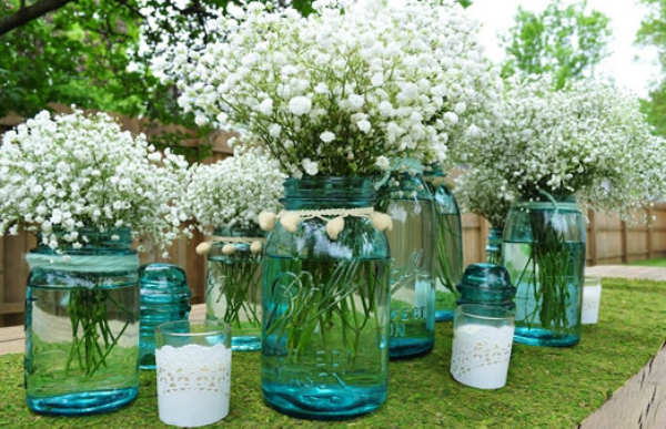 Hoa baby thường được cắm trong những chiếc lọ nhỏ, theo dáng tròn.