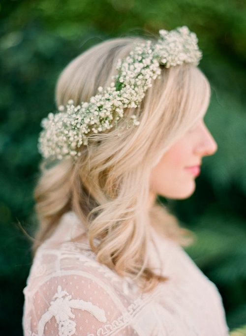 Cô dâu đẹp mơ màng với vương miện hoa baby.