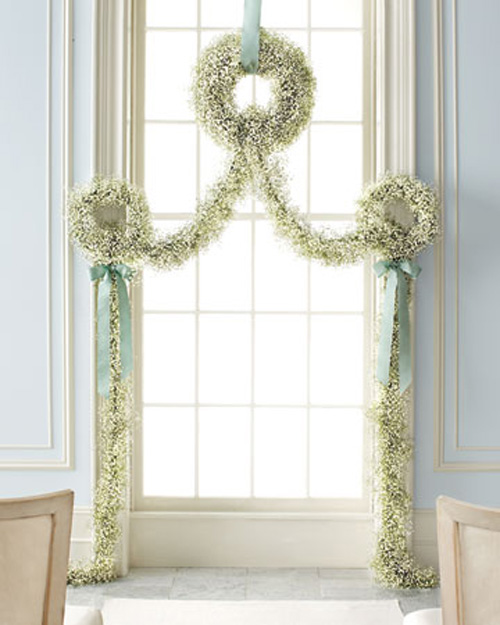 Những nhánh hoa baby được kết lại với nhau, rủ xuống sàn như một dải lụa mềm mại.
