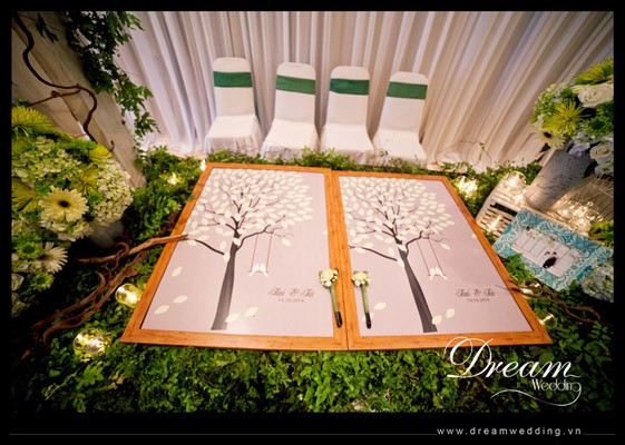 Sổ kí tên được thiết kế riêng để lưu lại chữ kí của những người thân đến dự tiệc