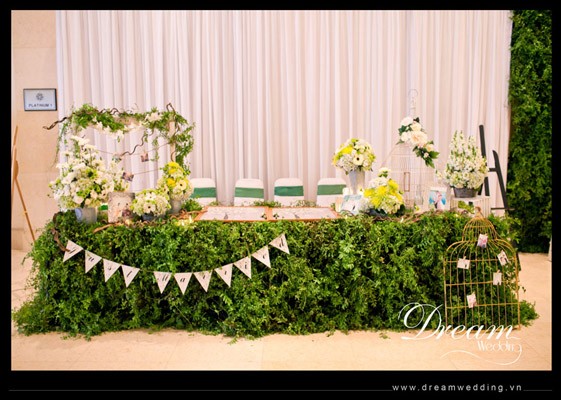 Màu xanh lá cây cùng với màu trắng của hoa được Dream Wedding khéo léo kết hợp trong đám cưới Chánh Thành & Thanh Thảo tổ chức tại trung tâm hội nghị tiệc cưới White Palace. Sau đây là hình ảnh ghi lại những khoảnh khắc đẹp trong ngày cưới của CD & CR: