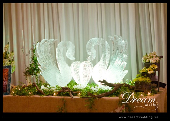 Cặp băng đăng hình ảnh 2 con thiên nga cũng được dùng trang trí