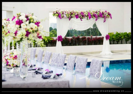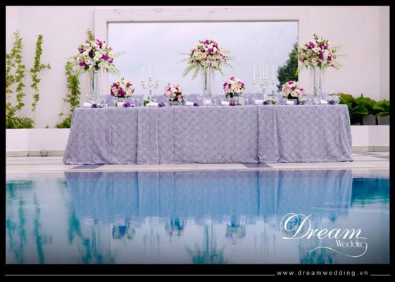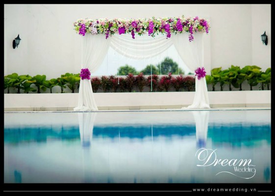 Công ty dịch vụ đám cưới Honey Bees xin giới thiệu hình ảnh trang trí tiệc ngoài trời bên cạnh hồ bơi tại nhà hàng Tân Sơn Nhất: