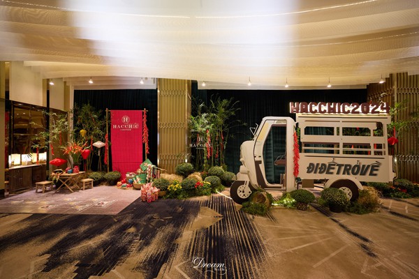 Thoạt nhìn, mọi người như đang chìm đắm vào không khí Tết Nguyên Đán với những hình ảnh diễn tả siêu chân thật về khung cảnh vào những ngày Tết như bánh chưng, chợ hoa hay những chiếc đèn lồng xinh xắn … đã biến không gian của Intercontinental Saigon trở nên nhộn nhịp, sum vầy hơn bao giờ hết. Và một điều mà Dream Wedding cảm thấy rất hạnh phúc khi thực hiện buổi tiệc này chính là thông điệp mà Hacchic Couture và cả Dream Wedding mong muốn gửi gắm đến những vị khách tham dự “Dù chúng ta ở bất kỳ nơi đâu nhưng quê hương luôn là nơi để chúng ta trở về”.