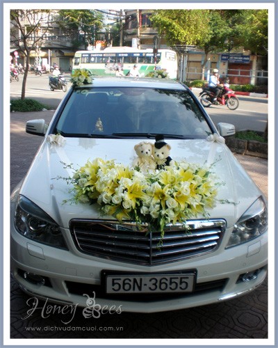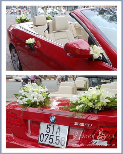 Công ty dịch vụ đám cưới Honey Bees giới thiệu 1 số hình ảnh trang trí xe hoa bằng hoa tươi trong ngày cưới