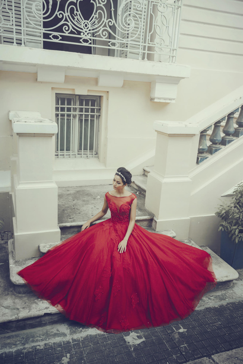 Cô dâu có làn da trắng xanh nên chọn tông đỏ ấm nóng để mang lại vẻ hồng hào và sức sống cho làn da.