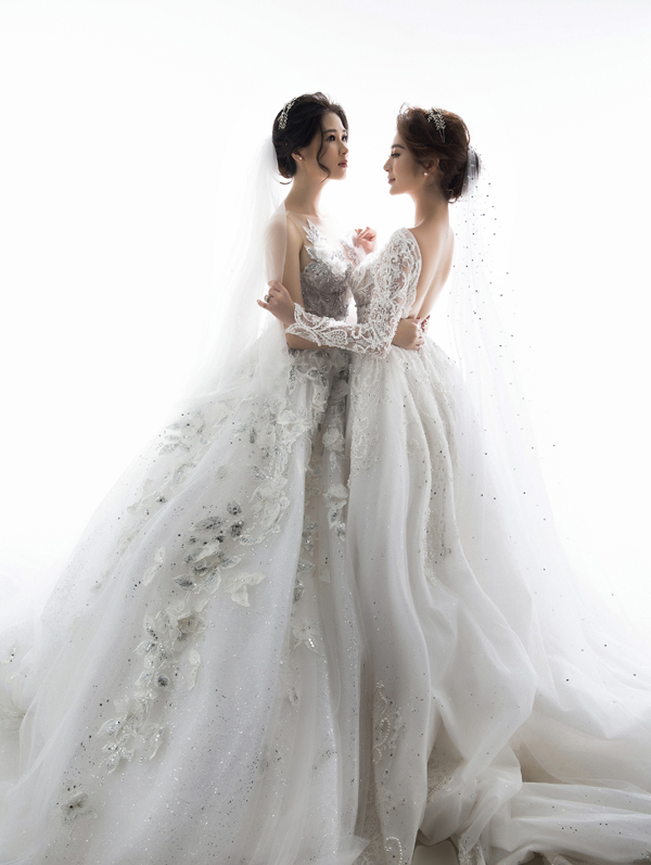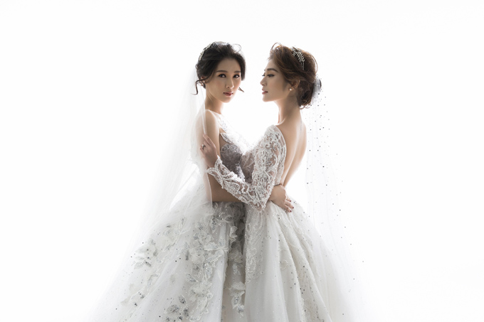Cùng với Mạc Anh Thư, bộ ảnh còn có sự góp mặt của diễn viên Phạm Thanh Trúc. Cả hai cùng tạo dáng ăn ý để thể hiện xuất sắc các mẫu váy cô dâu dành cho mùa cưới năm nay.