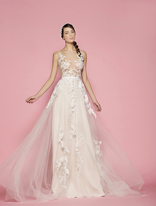 Cô dâu hiện đại không còn bó buộc mình trong những chiếc váy cưới cổ điển, kín đáo và an toàn. Nắm bắt xu hướng đó, chiếc váy có những chi tiết trong suốt, xuyên thấu xuất hiện nhiều trên các sàn diễn.