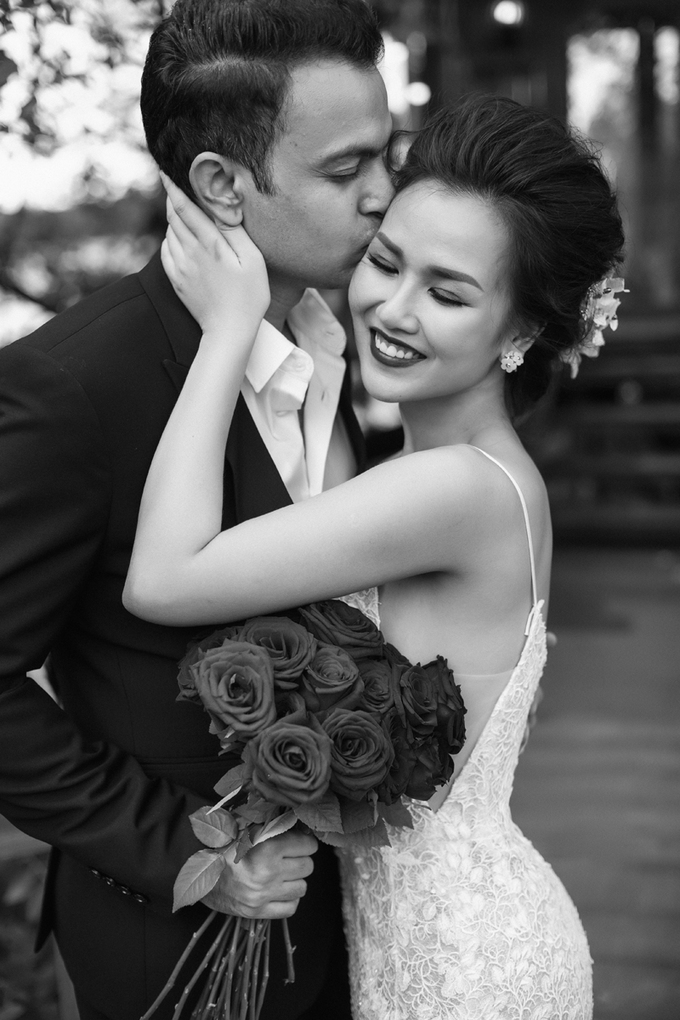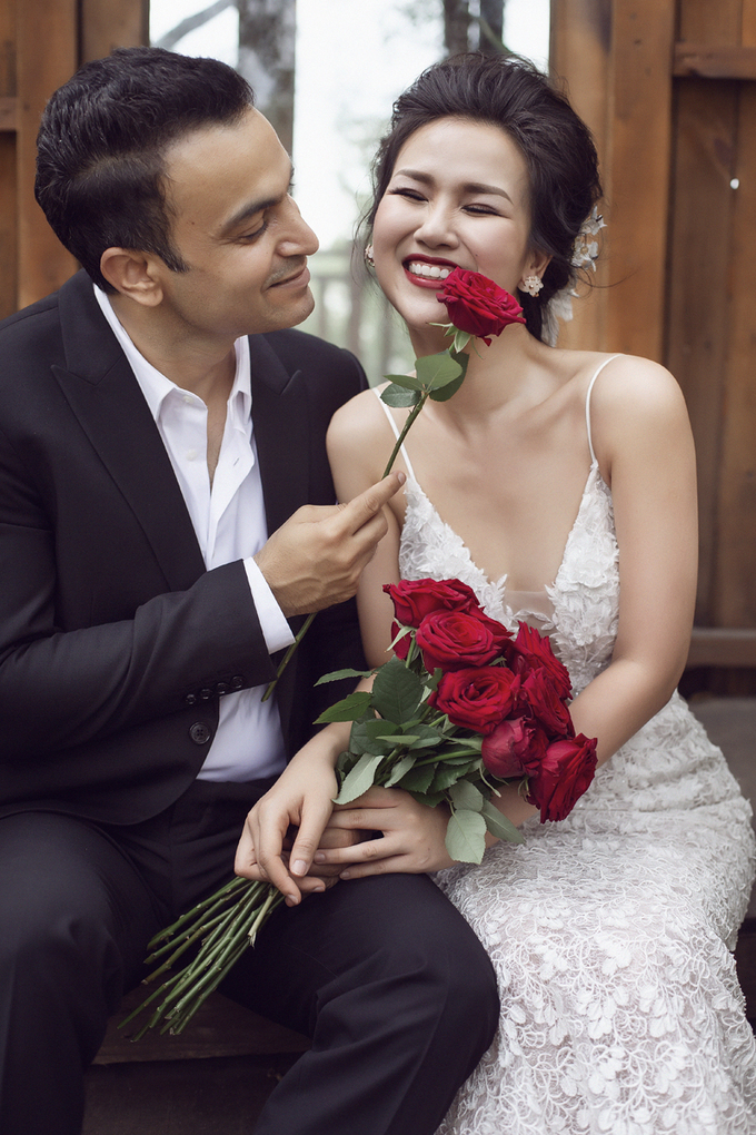 Trước ngày đại hỷ, uyên ương đã thực hiện hai bộ ảnh cưới theo hai phong cách khác nhau. Ở bộ ảnh tại bảo tàng TP HCM, Võ Hạ Trâm và ông xã chọn phong cách cổ điển, sang trọng. Còn với bộ ảnh này, uyên ương hướng đến sự lãng mạn.
