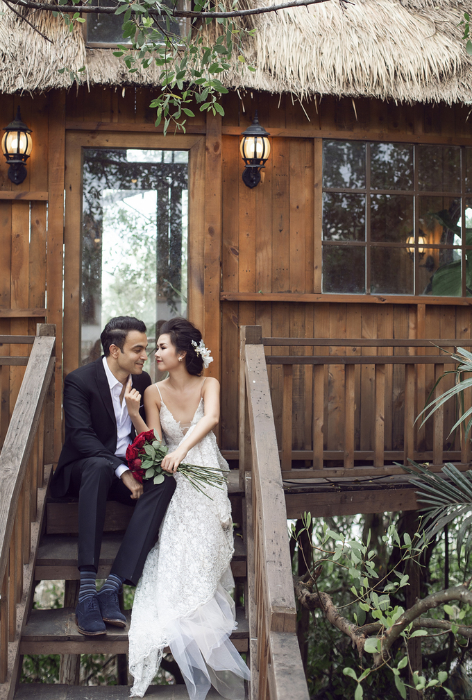 Do Vikas ngại chốn đông người nên khi thực hiện ảnh cưới ở bảo tàng TP HCM, anh đã gặp căng thẳng và không khỏi toát mồ hôi. Vì vậy, khi thực hiện bộ ảnh cưới tiếp theo, cô dâu Hạ Trâm đã cất công tìm chỗ vắng người để ông xã có được sự thoải mái, tự nhiên khi chụp hình.