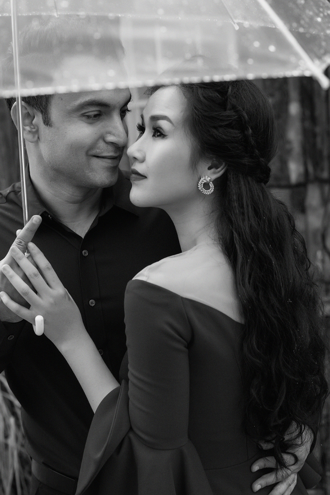 Sau khi công bố chuyện hỷ sự sẽ diễn ra ngày 14/1 tại TP HCM, Võ Hạ Trâm tiếp tục bật mí bộ ảnh cưới với vị hôn phu người Ấn Độ - Vikas. Một nửa của người đẹp là doanh nhân kinh doanh đá hoa cương. Uyên ương chạm mặt nhau lần đầu trong một buổi tiệc tại TP HCM.