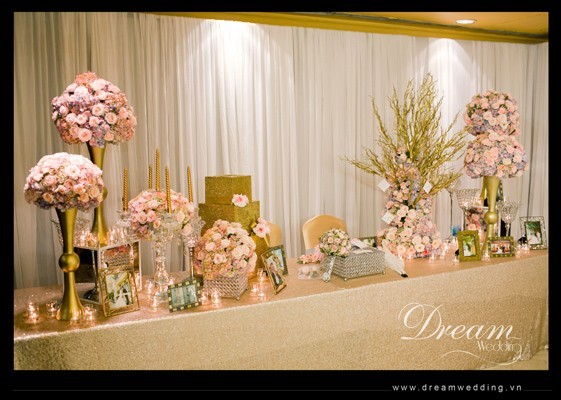 Màu hồng là màu sắc rất thông dụng trong lễ cưới. Đây là màu sắc tượng trưng cho niềm đam mê và sự ngọt ngào của tuổi trẻ. Đa số các cô dâu trẻ đều yêu thích gam màu này vì nó đem đến sự lãng mạn nhưng vẫn pha chút nhí nhảnh, đáng yêu.