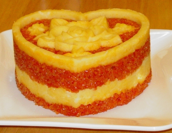 Món ăn này có phần thịt trong như thạch thể hiện cho sự an lành, trong trẻo của tình yêu. Sự hòa quyện, gắn kết giữa các thành phần của món ăn một cách tự nhiên như một lời chúc phúc gửi đến cặp tân lang và tân nương.6. Thịt đông: Trong trẻo vạn niên, tình duyên tốt đẹp