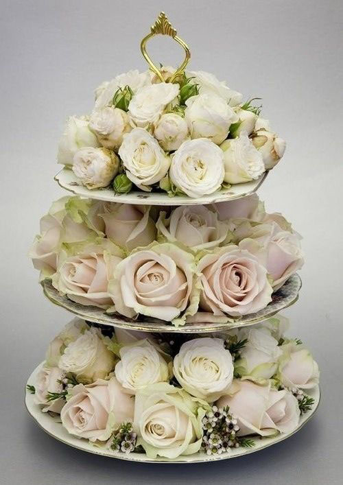 Khay 3 tầng phủ ngập hoa độc đáo.