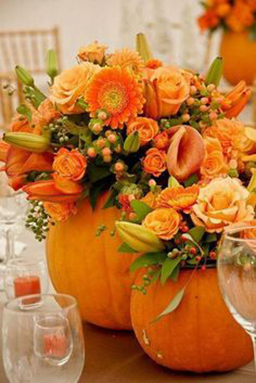 Chọn bí ngô để trang trí đám cưới mùa thu là gợi ý thú vị cho cô dâu chú rể thích sự phá cách, mới mẻ.