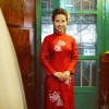 Trong lễ ăn hỏi diễn ra ngày 22/3 vừa qua ở Hà Nội, Ngô Quỳnh Liên, sinh năm 1992, xuất hiện rạng rỡ trong bộ áo dài màu đỏ thêu hoa cúc màu trắng nổi bật.